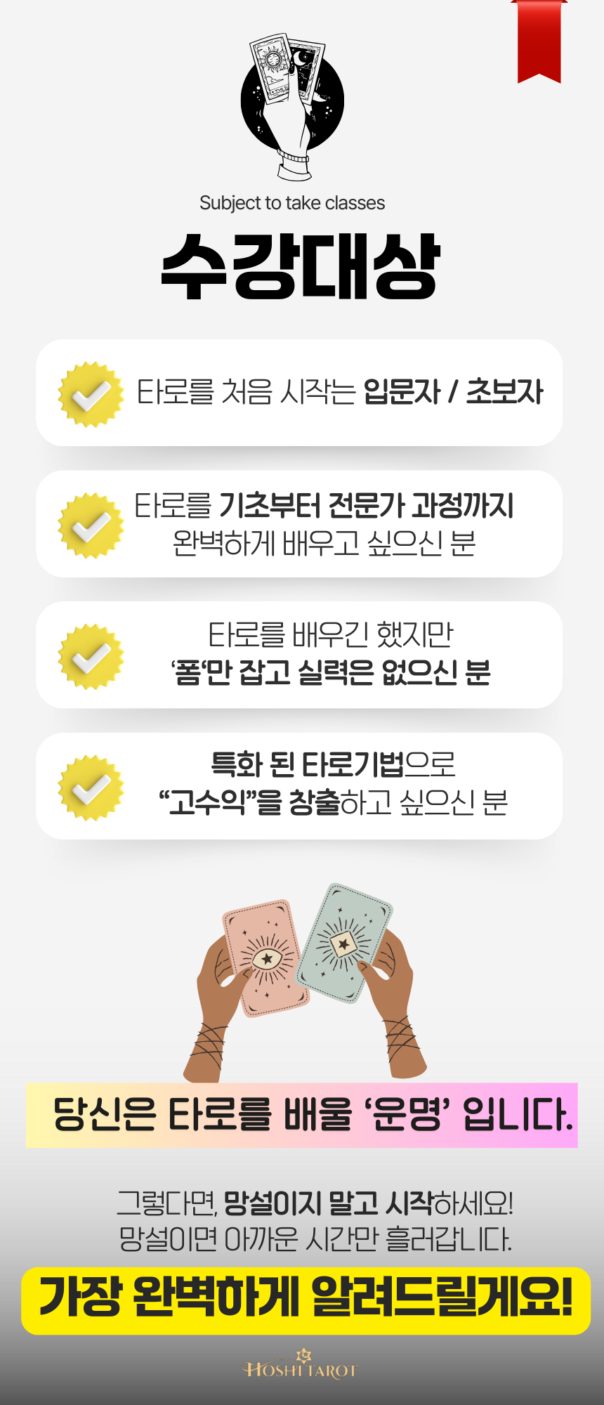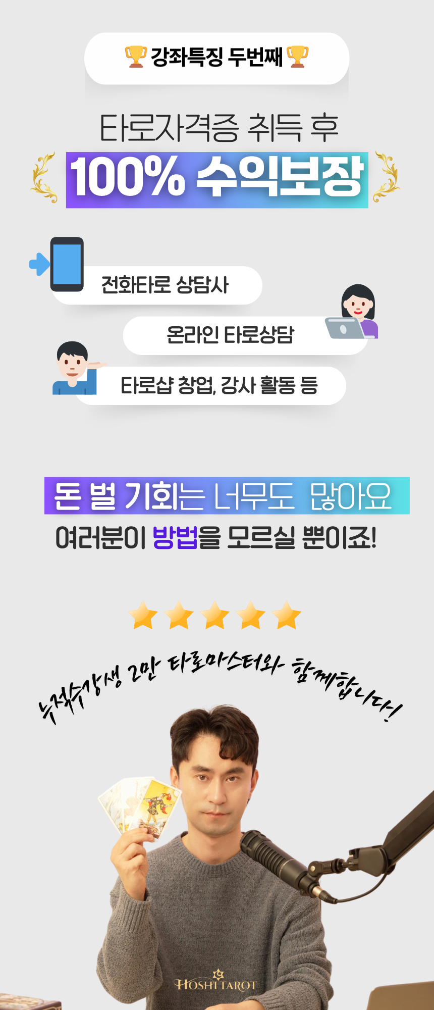 *타로자격증은 수강생 본인 명의로만 1회 발급되며, 개명시 주민등록 등본으로 본인 임을 증명을 해주셔야 합니다.